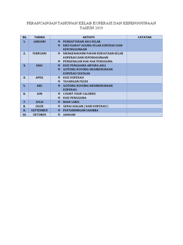 Perancangan Tahunan Kelab Koperasi Dan Kepenggunaan Pdf
